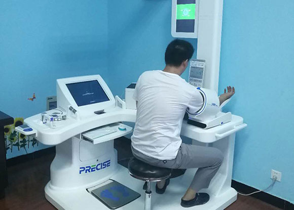 隨著生活水平的提高,人們越來越關(guān)注自身的健康狀況,希望能在家中通過簡單操作的檢測設(shè)備隨時量測自己的一些生理指標(biāo)參數(shù),獲得專業(yè)的健康指導(dǎo)意見。適用于家用的各種健康檢測設(shè)備現(xiàn)今也日益普及,但此類產(chǎn)品往往功能比較單一,只能進(jìn)行單一的健康信息檢測,不能進(jìn)行用戶的健康一體化檢測,且沒有網(wǎng)絡(luò)傳輸功能,不能對檢測記錄進(jìn)行長期監(jiān)控、分析,滿足不了人們對健康檢測設(shè)備功能多樣化、智能化、網(wǎng)絡(luò)化的需求。有鑒于此,實有必要開發(fā)一種健康檢測一體機(jī)解決上述問題。發(fā)明內(nèi)容[0003]針對現(xiàn)有技術(shù)中存在的不足之處,本發(fā)明的目的是提供一種健康檢測一體機(jī),其結(jié)構(gòu)固定,檢測儀器取放方便,用戶只需要坐在椅子上就可以完成體檢,無需繁瑣更換位置,可快速檢測和采集數(shù)據(jù),同時實現(xiàn)數(shù)據(jù)的可視化,以及對檢測結(jié)果進(jìn)行的異常分析,具有廣闊的市場應(yīng)用前景。