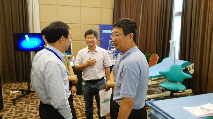 國家衛(wèi)計委繼教中心楊爰平主任放棄休息,全天參加了學(xué)術(shù)研討、遠程介入超聲演示觀摩等活動,加深了對超聲新技術(shù)的理解,從而更好的領(lǐng)導(dǎo)超聲能力建設(shè)項目的實施。晚上楊主任不顧一天的勞頓,在會場召開了部分演講專家的座談會,王金銳、錢林學(xué)、劉吉斌、毓星 等多位專家到科美達展位進行參觀,并就超聲在專科領(lǐng)域的信用討論,充分肯定了科美達公司這幾年在??祁I(lǐng)域的成就,勉勵科美達保持在婦科超聲領(lǐng)域的研發(fā)、臨床優(yōu)勢,引領(lǐng)中國超聲走出一條新路。