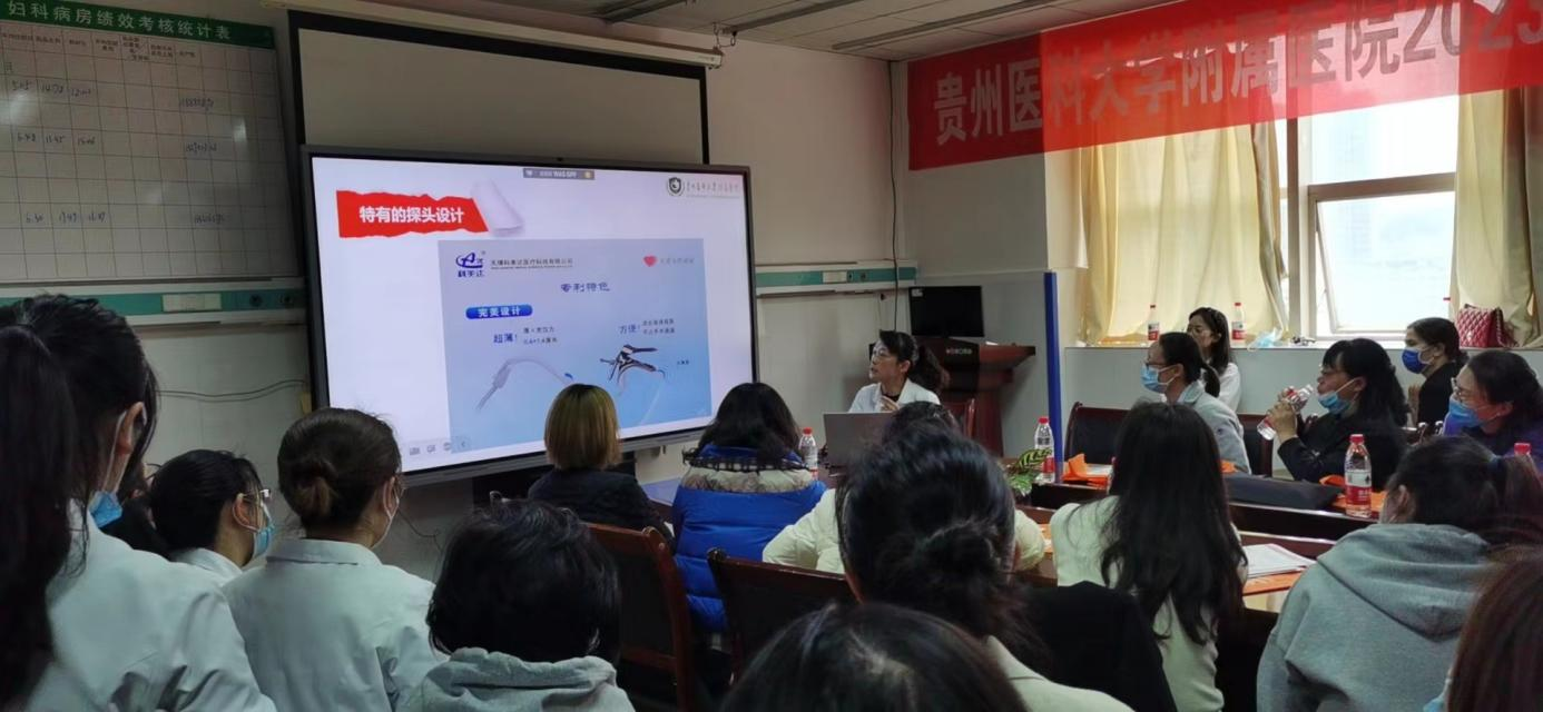 為更好地開好此次會議,按照項目要求,精心制作PPT、宣傳折頁等資料,面向醫(yī)護人員介紹彩色超聲監(jiān)測下的精準宮腔手術--《彩色宮腔監(jiān)測系統》手術技巧及注意要點等婦產科相關知識,會議現場全員積極參與、熱烈討論,取得了良好實效。